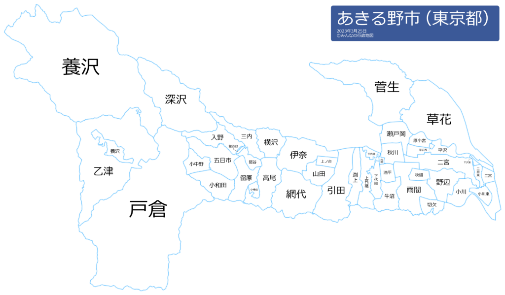 | 管轄エリア | あきる野市の内(網代・五日市・伊奈・入野・上ノ台・乙津・小中野・小峰台・小和田・三内・高尾・舘谷・舘谷台・戸倉・留原・深沢・山田・養沢・横沢)・西多摩郡の内(日の出町・檜原村) |